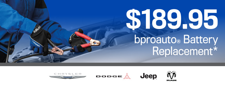 *$189.95 bproauto Battery Replacement. Offer valid on 12V Battery Purchases only. Offer not valid on prior service or battery purchase. Not valid with other offers. Must present original coupon upon arrival for initial service. See Service Advisor for complete details. Valid at Gossett Chrysler Dodge Jeep Ram FIAT. Offer expires ##date##.