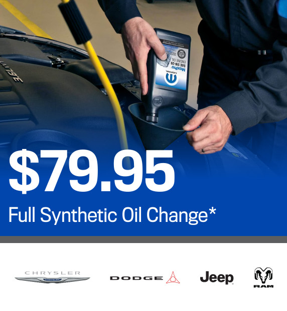 *$79.95 Full Synthetic Oil Change. Offer valid on oil replacements of full synthetic oil, oil filter and fluid level inspection. Qt limitations may apply. Must present the original coupon upon arrival for initial service. Offer valid at participating FCA US LLC dealers only. Not valid with other offers. Customer is responsible for local tax and Shop Supplies fee. See Service Advisor for complete details Valid at Shottenkirk Chrysler Dodge Jeep Ram Prosper. Offer expires ##date##.