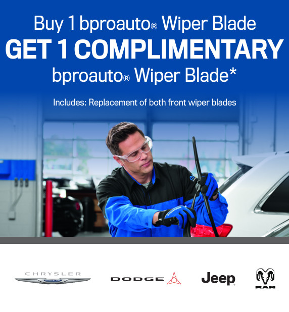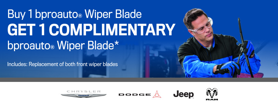 *Buy 1 bproauto Wiper Blade Get 1 Complimentary bproauto Wiper Blade. Please present coupon at time of write-up. Cannot be redeemed for cash value. Customer is responsible for local tax and Shop Supplies fee. Valid for most makes and models. Prices may vary by model. Other exclusions may apply. See Service Advisor for complete details. Valid at Shottenkirk Chrysler Dodge Jeep Ram Prosper. Offer expires ##date##.